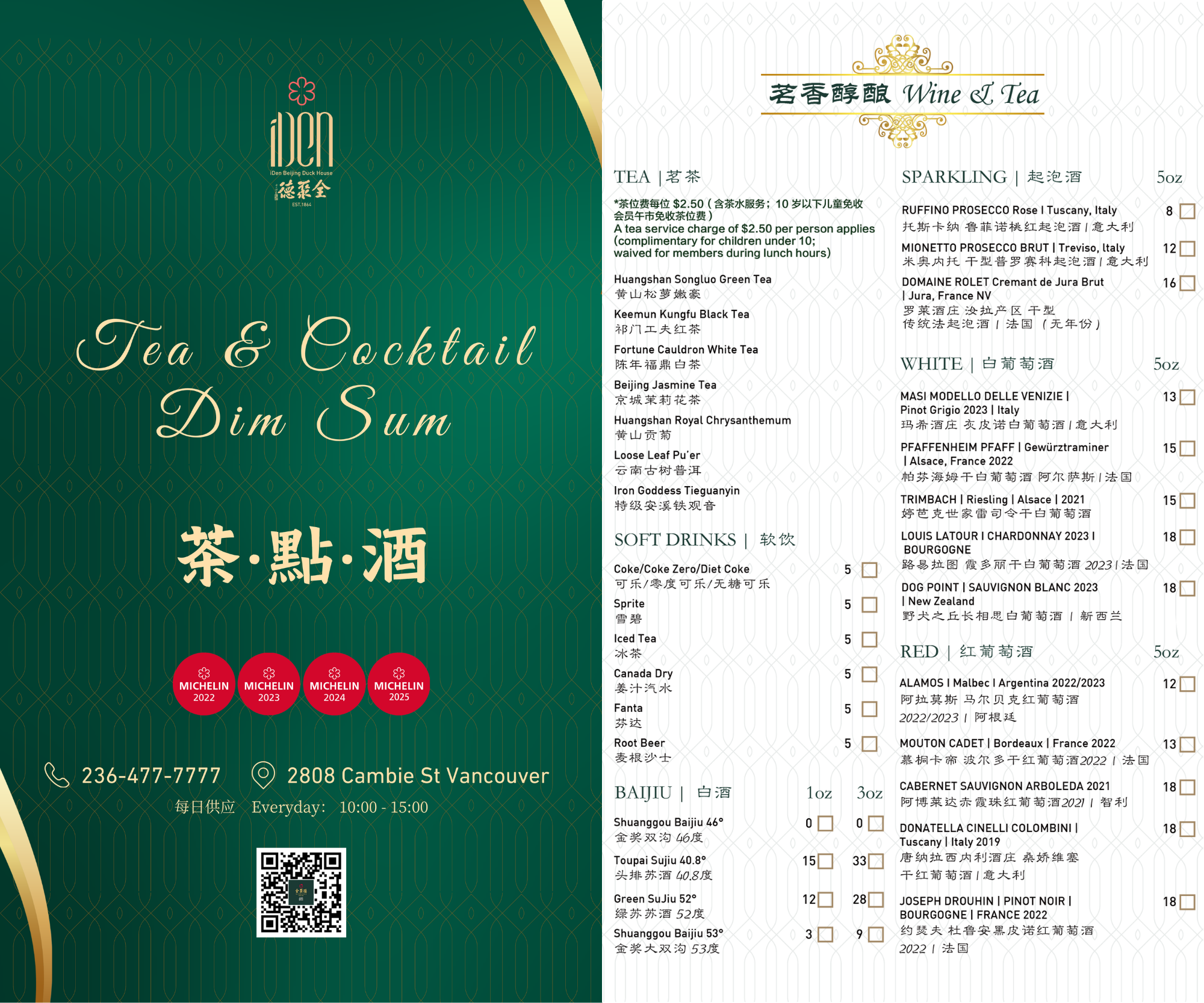 每日供应 Everyday: 10:00 - 15:00