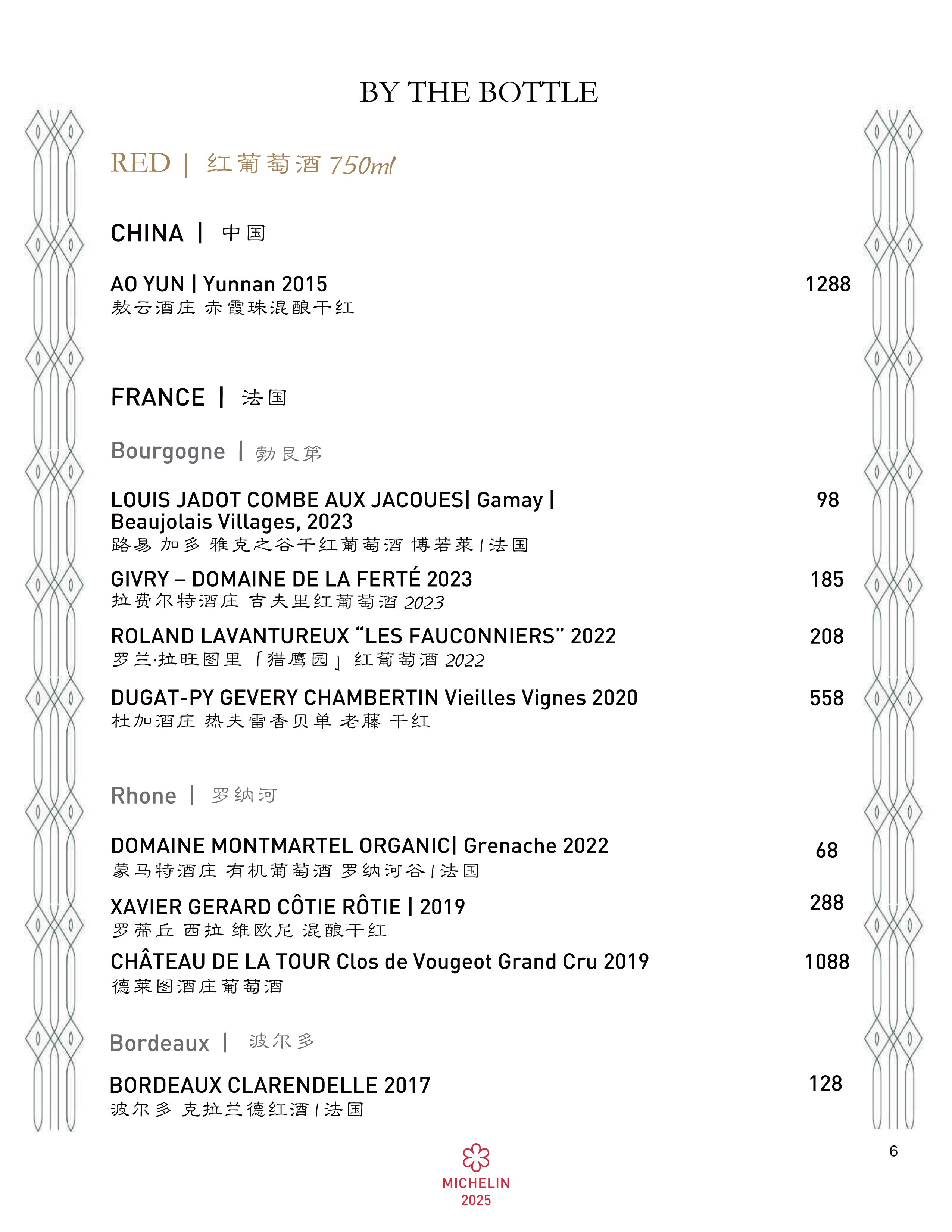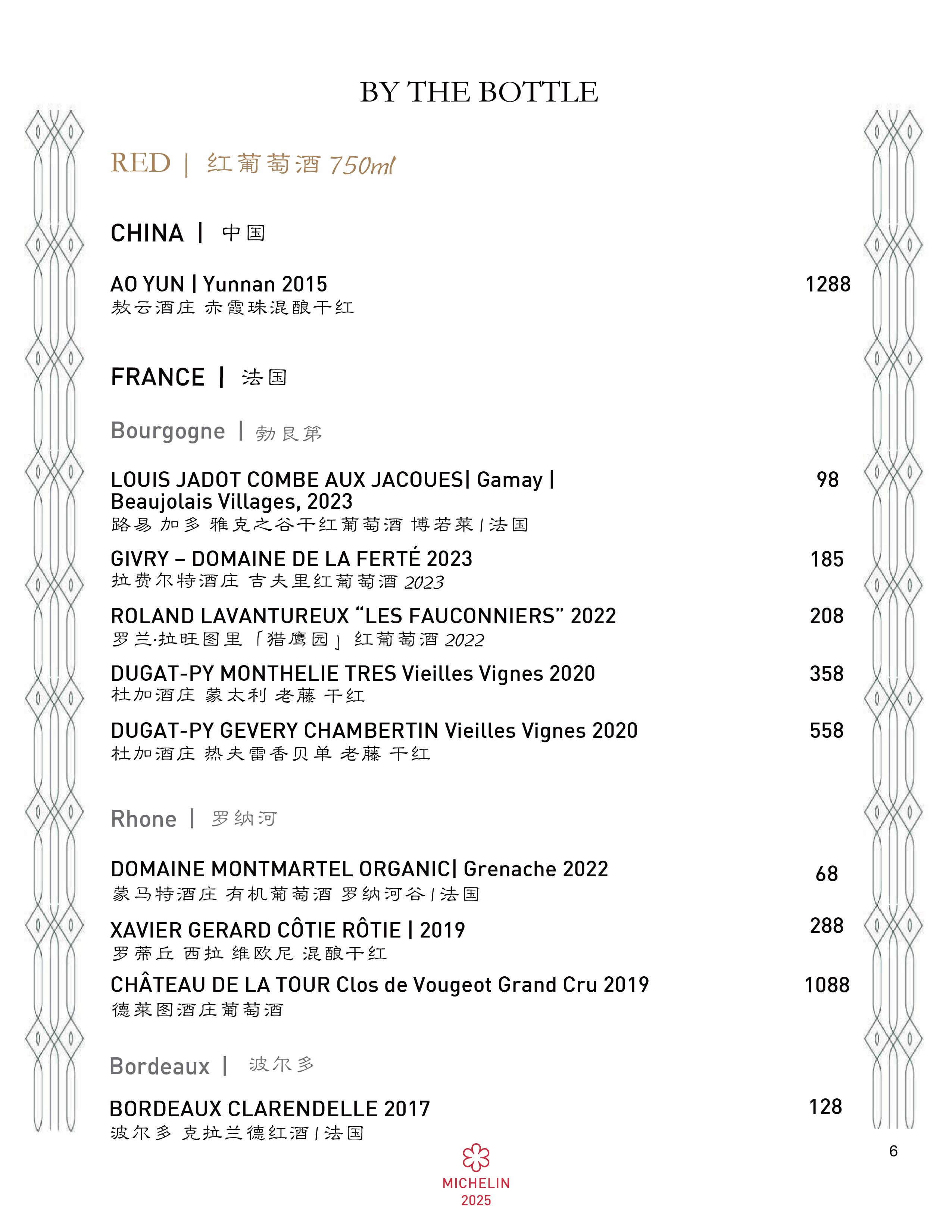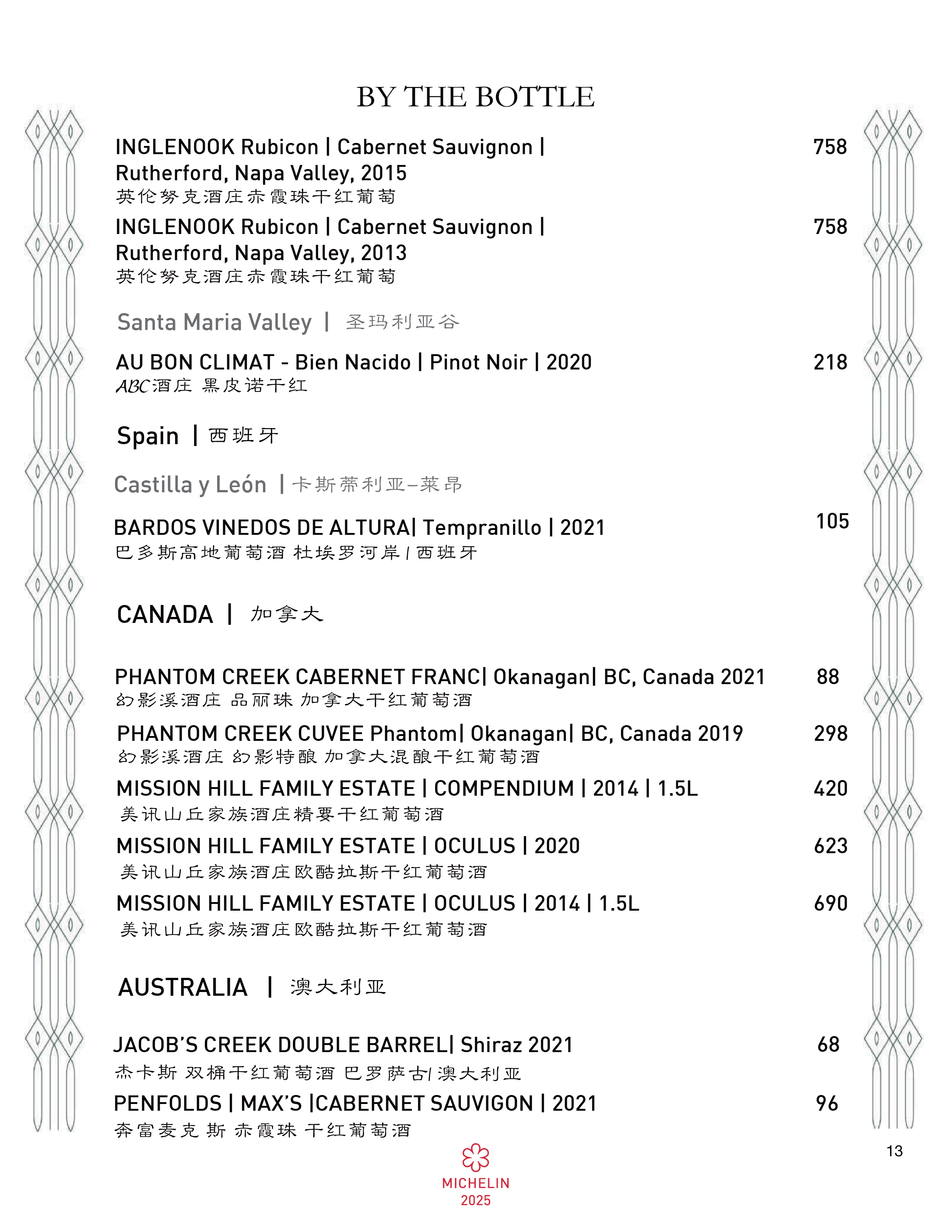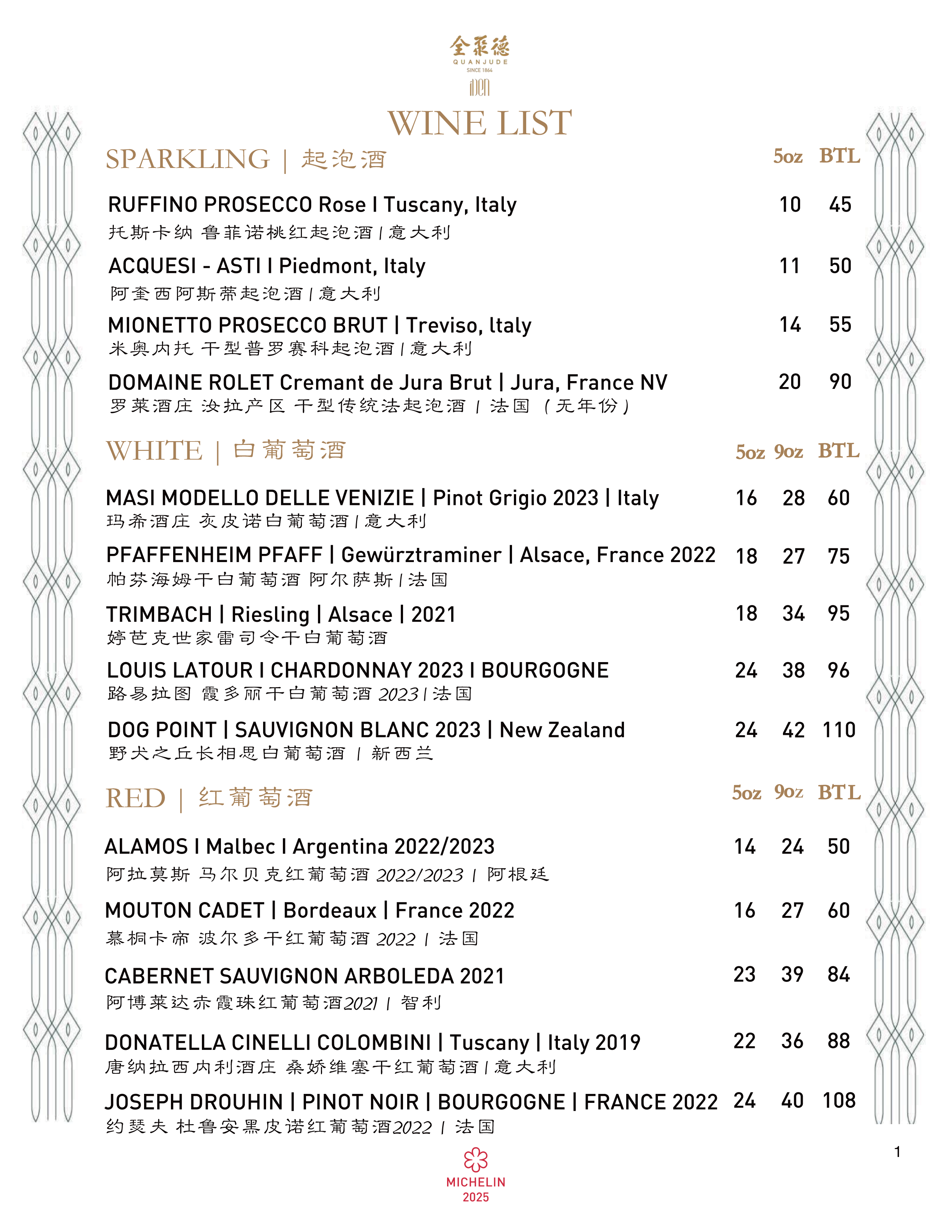 Wine Menu